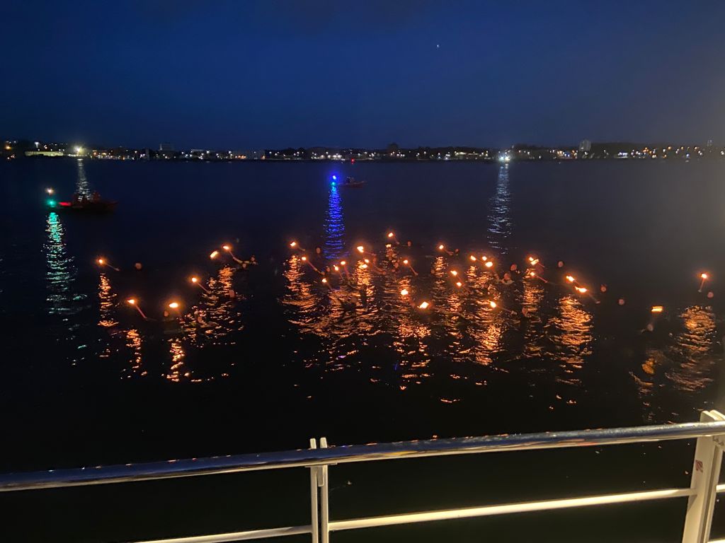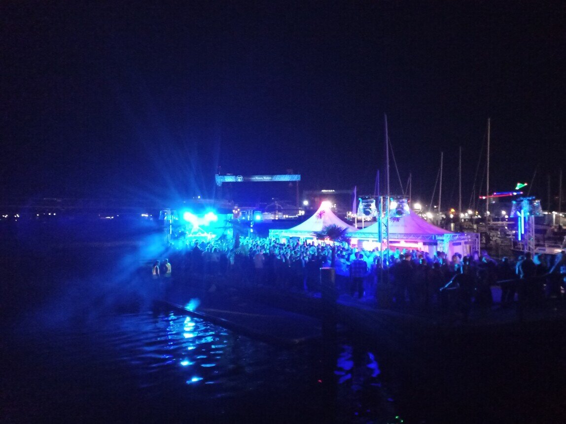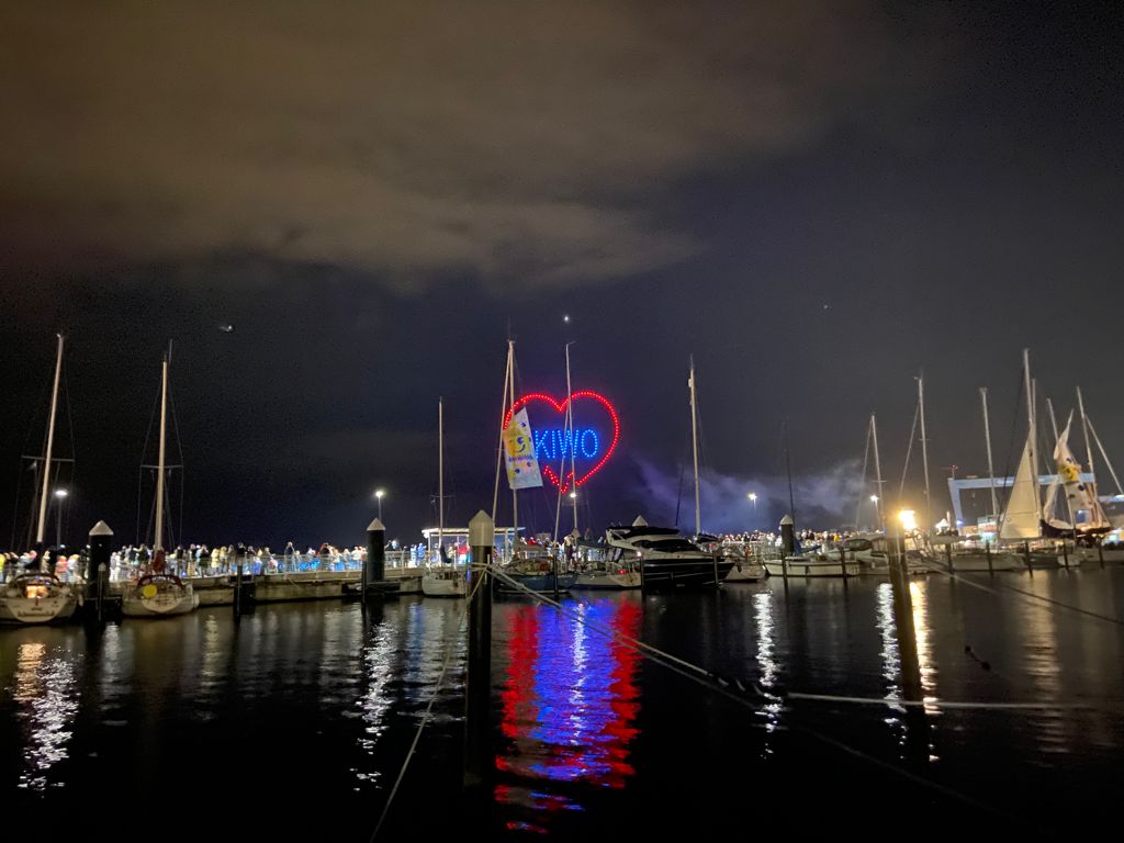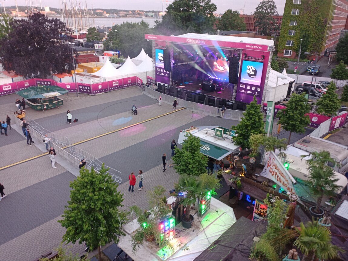 6. Tag (Freitag): Kurswechsel nach dem Frühstück Richtung Kiel, gemeinsame Unternehmungen am Abend auf der Kieler Woche, wo gerade der "Soundcheck" stattfindet.