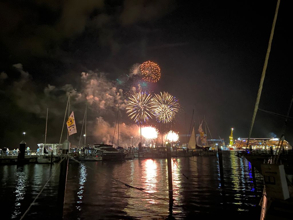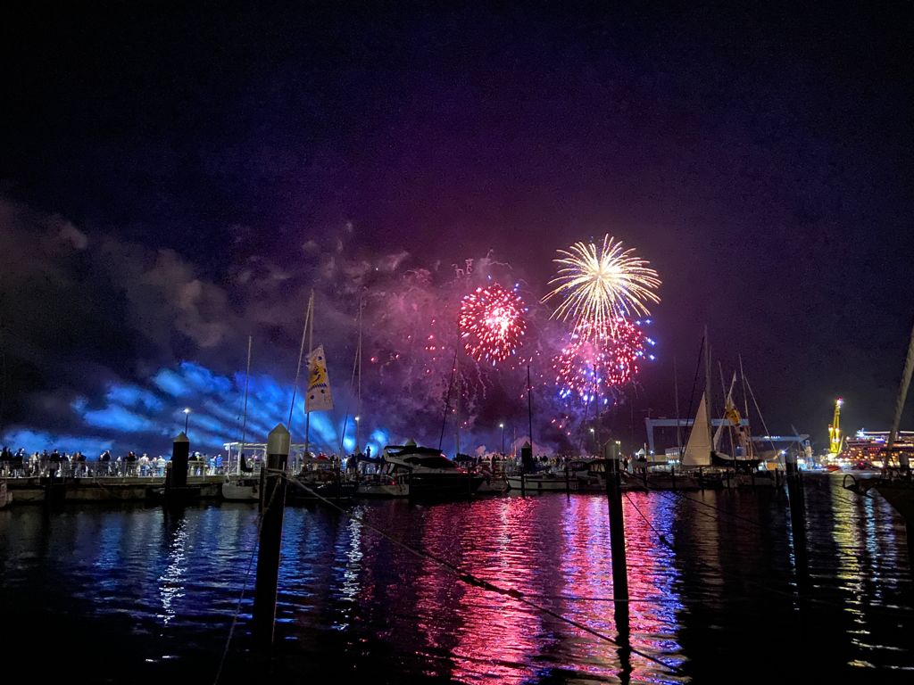 Windjammerparade 2020 und Feuerwerk 2021 direkt vor unserem Flottenstützpunkt: