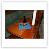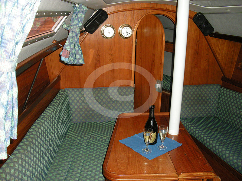 Im abgetrennten Salon lässt sich die U-Sitzgruppe, an der zur Kieler-Woche schon bis zu 9 Personen Platz fanden, einfach zur Schlaffläche umbauen (Liegefläche: 190 cm x 90 cm). Die Steuerbordsitzbank hat eine Breite von ca. 55 cm und kann durchgängig (unter dem Navitisch) verbaut werden.